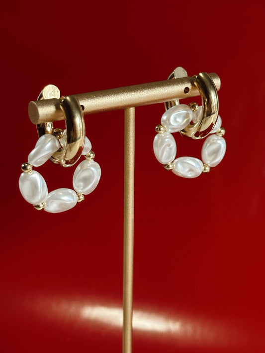 Golden Duo Pearls Hoops